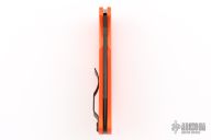 This Native Chief takes the time-tested design of the original and stretches it out to create a longer and slimmer profile with even more cutting performance. Orange G-10 scales and a black full-flat ground blade solidify the design. Textured G-10 handle scales are backed up by a precision-machined lockback mechanism. 4-position pocket clip allows for fully ambidextrous tip-up or tip-down carry. New  condition. Comes with original box and papers.