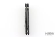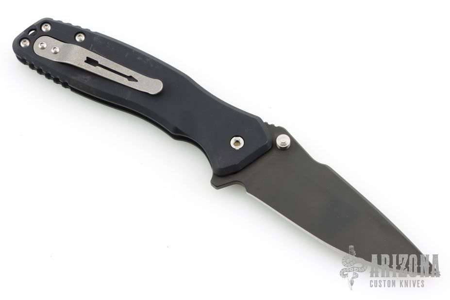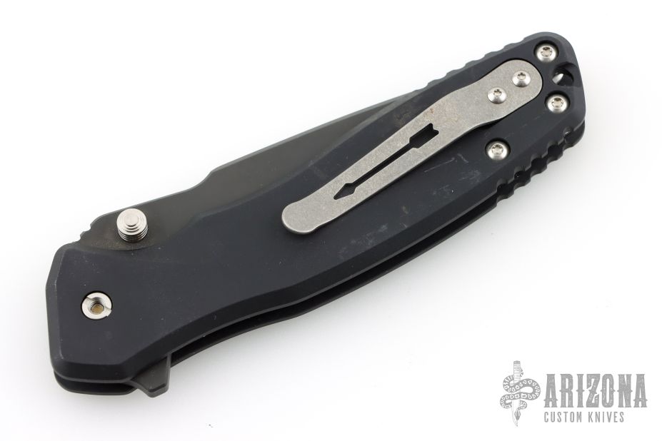 PALLAS (PALE ES) was the Titan god of Warcraft, a fitting name for this folder. It features a beefy blade made from CPM-S35VN that rides on a set of alpha bearings inside a 6061 aerospace aluminum frame. The blade can be opened easily with the flick of the thumb stud or the flipper tab. The hardware (button, thumb studs, spacers and screws) are made from stainless steel and the signature titanium arrow clip for tip-up carry will hold it securely in your pocket. The blade shape, handle shape, size and durable design make this an ideal tactical folder you can carry each and every day. Has a couple light scuffs, otherwise excellent condition.