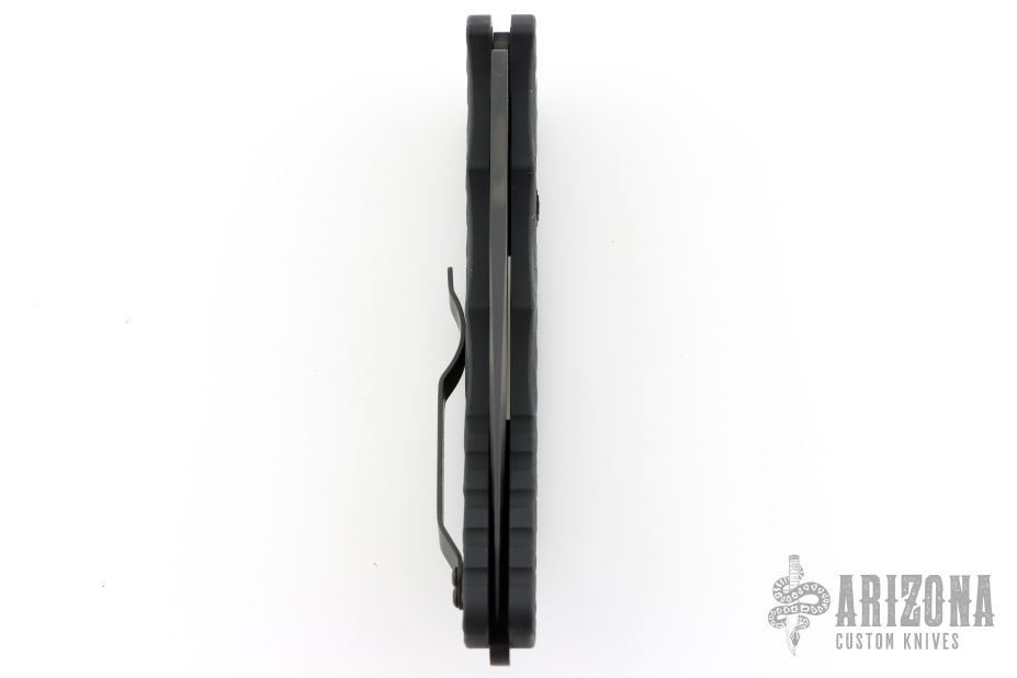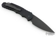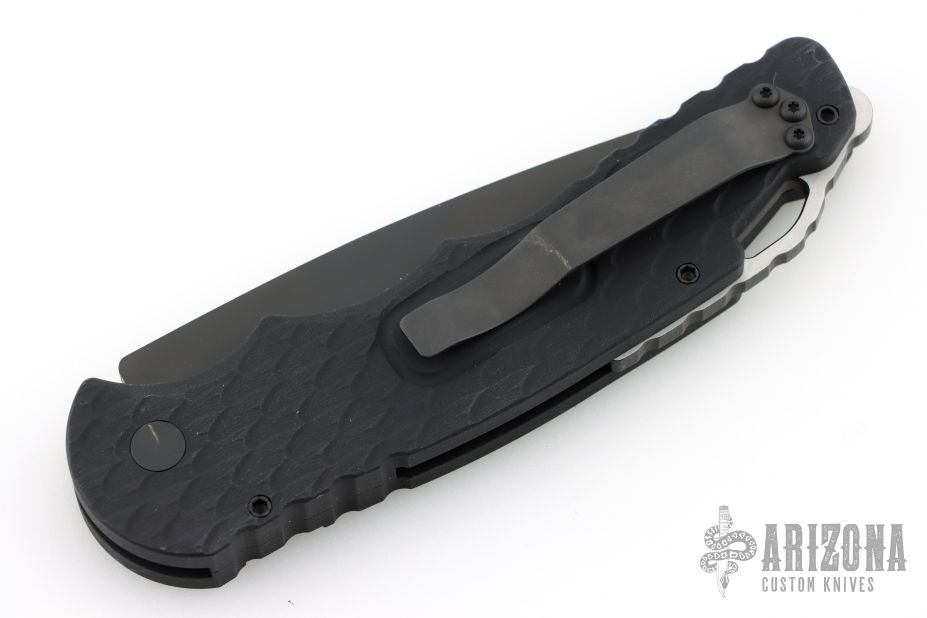 This Tactical Response TR-4 features a black anodized aluminum body with feather texture, which provides good traction and looks great. The blade is black finished stainless steel with a plain cutting edge. The TR-4 is a knife that won't let you down. It fires hard, locks up like a rock, and feels great in hand. The slim design sits comfortably for tip-up pocket carry. Black firing button. Has a couple light scuffs, otherwise excellent condition.