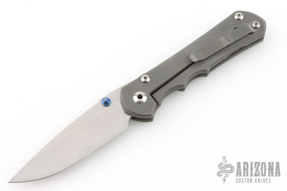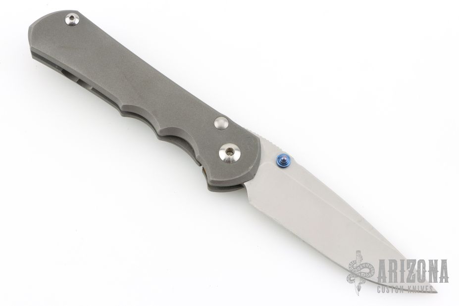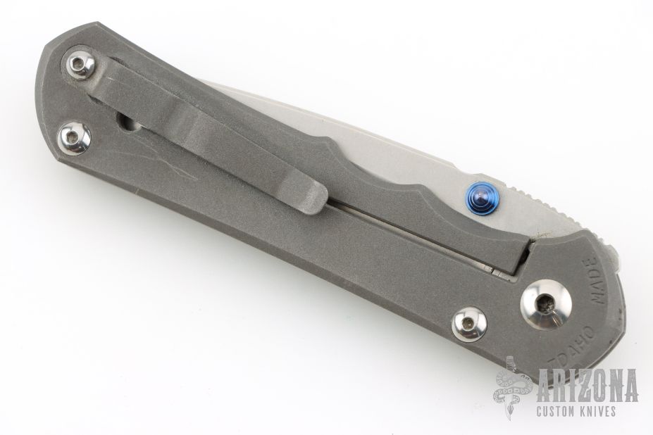 This left handed Large Inkosi from Chris Reeve features a tumble finish blade with dual thumb-studs and a bead blast titanium frame. Bead blast titanium clip, tip up carry.  Comes with original box, papers, cloth, lube, tool, and COA dated OCT 31, 2022.  Nice detent, and blade seating. Has scuffs and scratches, good condition otherwise. Would make a great user!