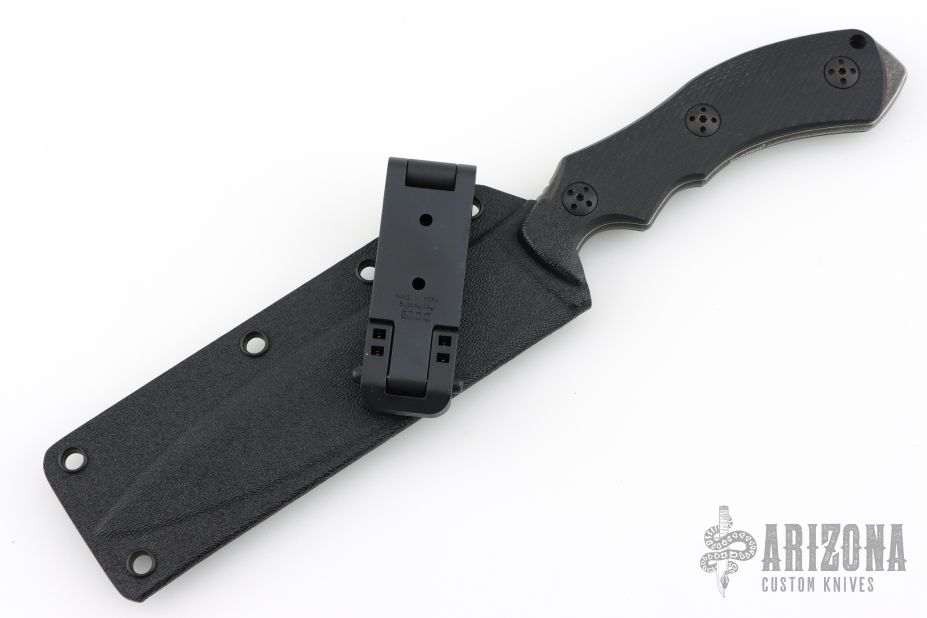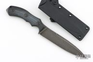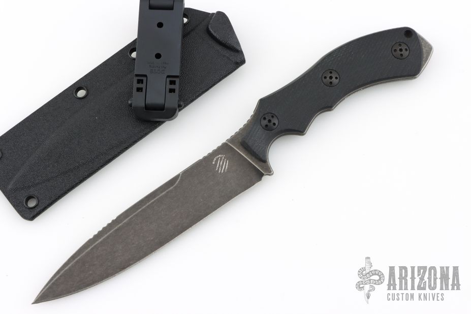 The Raptor by Bastinelli Creations, produced by Lion Steel of Italy features a flat ground spear point blade with a notched thumbrest. .157" blade stock and 1.218" blade depth. The handle is comprised of textured black G-10 over a full tang construction with exposed tang pommel and lanyard hole. Includes kydex sheath. Excellent condition.
