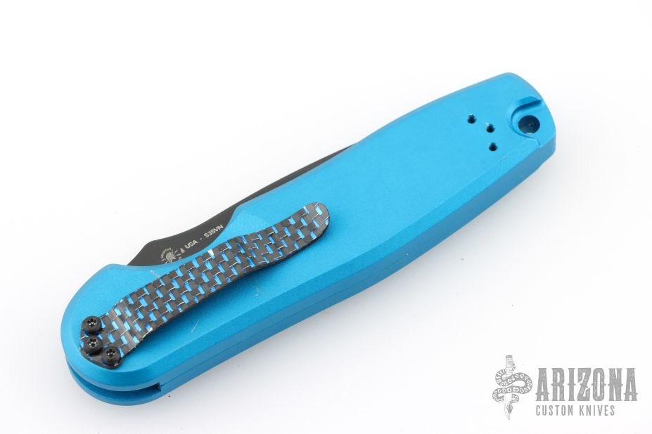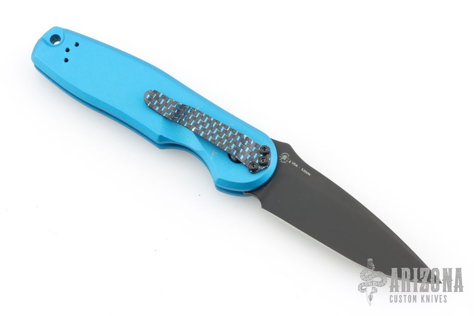 This light weight automatic folder has a CPM S35VN blade and precisely machined frame that provide a lockup in the open position that is rarely found in an auto opener! From its blacked out hardware, tip up/tip down carry option, and high tech carbon fiber pocket clip the Zelos is a true blend of design, technology, and function. Has some light scuffs, otherwise excellent condition.