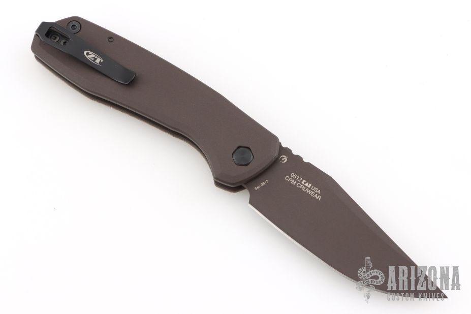 - CPM Cru-Wear steel provides superior edge retention, toughness, and ease of sharpening; dark bronze Cerakote coating for added blade protection