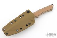 "Phrike is the goddess of horror / fear in Greek mythology. Her name literally means "tremor, shivering". This small lightweight blade was specifically designed to be carried as a self defense tool / bushcrafting blade. It's short 4.25 inch blade and minimal inset handles make it very comfortable and slim. This useful blade can be used on a daily basis to manage common tasks or for use in unexpected situations / emergencies." This Phrike features a CPM S35VN blade with Flat Dark Earth coating (SpartaCoat - PVD - ZrN) and a coyote G10 handle. Includes a kydex sheath. Has a couple light scuffs, otherwise excellent condition.