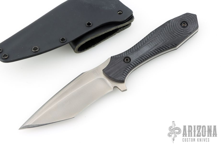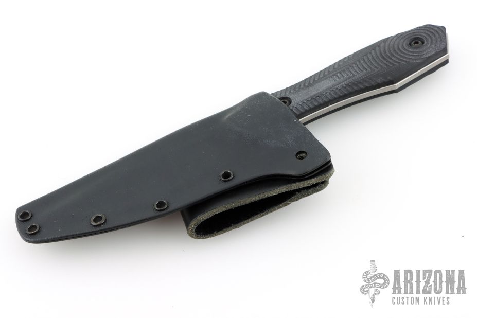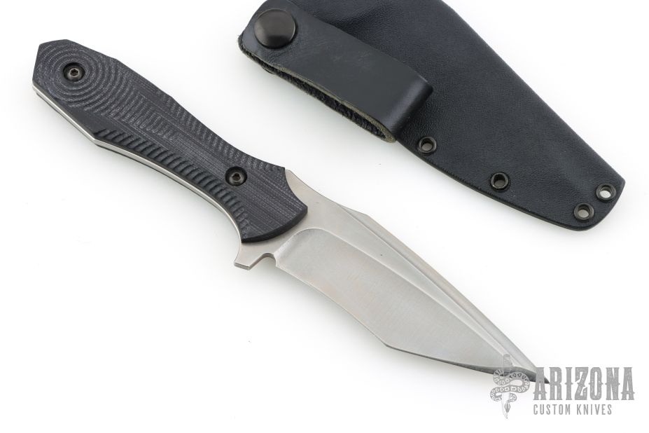 This Covert by Biegler Blades features a stonewashed blade with false top edge, .126" blade stock and 1.355" blade depth, full tang construction. The handle has black G-10 scales. Comes with a kydex sheath. Excellent condition.