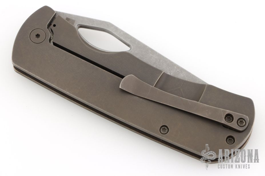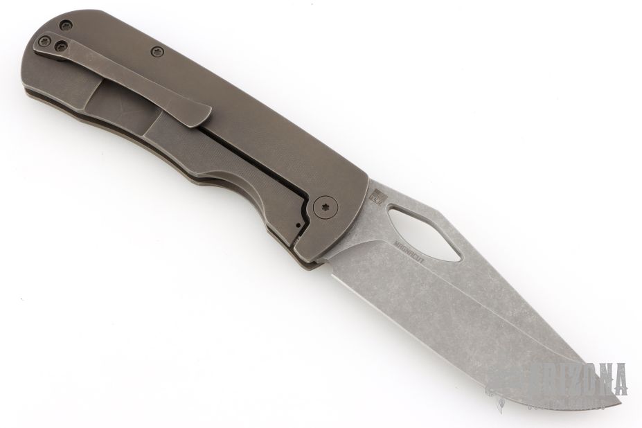 This Dixon by McNees Knives features a hollow ground stonewashed blade with thumbhole. The handle has a tumbled and anodized titanium frame, tip up titanium clip. Nice detent, blade seating and lockup. Comes with original box and COA. Excellent condition.