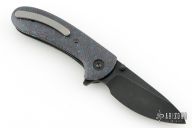 This Lynx flipper by MassDrop is an Eric Ochs design. It features a dark tumble finished blade with dual thumbstuds and notched flipper. The handle has custom micarta scales, black titanium liners, black G-10 backspacer, tumbled titanium clip with hidden screws. Comes with a zippered case. Excellent condition.