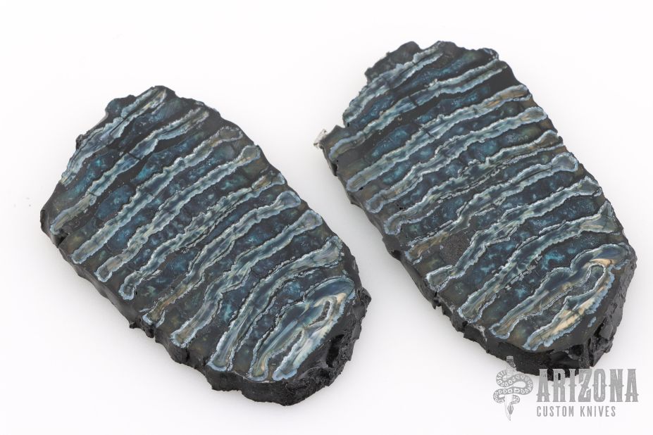 Mammoth tooth slabs professionally sliced and stabilized by Fine Turnage. This tooth is from interior Alaska and carbon dated to about 50,000 years ago. Pieces are approximately 4" x 2" x .300".