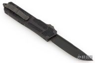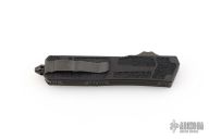 The Microtech Scarab II is a high quality tactical out-the-front knife, based on the original Microtech Ultratech design. Built to withstand the extreme, the Scarab II excels in high-intensity covert operations. The Scarab II is designed for a broad spectrum of utility and close quarter combat applications for use by qualified law enforcement, military, and government agency operatives. The Scarab II is fabricated to the highest possible standards to assure reliability and safety with its use. Featuring a one-handed, open and close, dual-action out-the-front (OTF) design, and double edge blade. The Scarab is produced with a large easy-to-grip handle that contains non-slip grip inlays on both sides. Comes with original box and papers. Excellent condition.