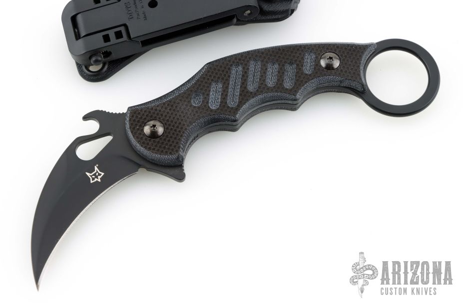 Designed by combat knife specialists Fox Knives, the Fox 598 Fixed Blade Karambit combines hard earned expertise with field-ready functionality. This sleek, blacked-out combat karambit mirrors the best-selling Fox 599 Folding Karambit with Emerson Wave but offers the strength and reliability of a full-tang fixed blade. Like all karambits produced by Fox Knives, the Fox 598 comes with unbeatable ergonomics, weapon retention, and aesthetics.