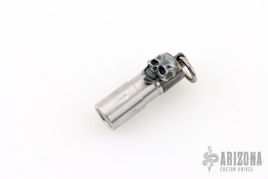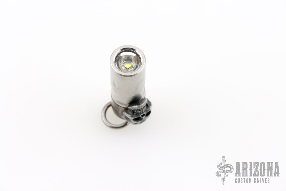 This Darkness Mini flashlight from Steel Flame features Darkness Skull. It is rechargeable using a micro usb charging cord. It is in excellent condition.