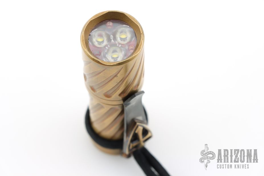 This brass Trident from Hanko features the twist pattern and a Crusader Cross Steel Flame pocket clip. Has some light scratches and patina, excellent condition otherwise.