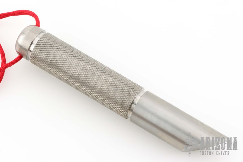 This Titanium Wedge of Doom by Lazi Szabo is 1" in diameter, has a knurled handle and a satin finish. New from maker.