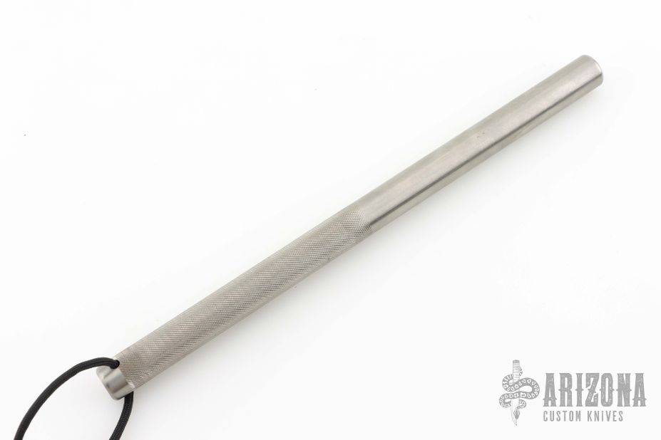This Titanium 12" baton by Lazi Szabo is .750" in diameter, has a knurled handle and a satin finish. New from maker.