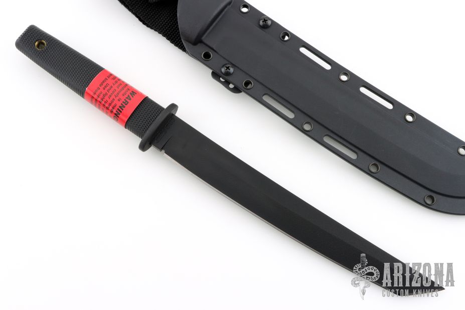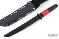 This Oyabun by Cold Steel features a black tanto blade, .192" blade stock and 1.153" blade depth, hidden tang construction with a rubber handle. Comes with original box and sheath. New condition with original warning label.