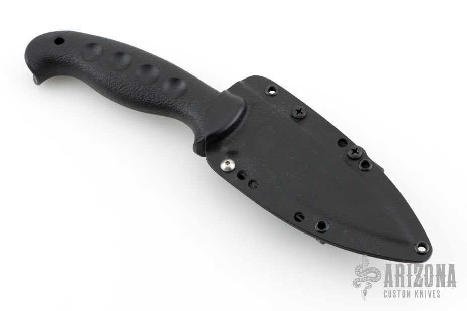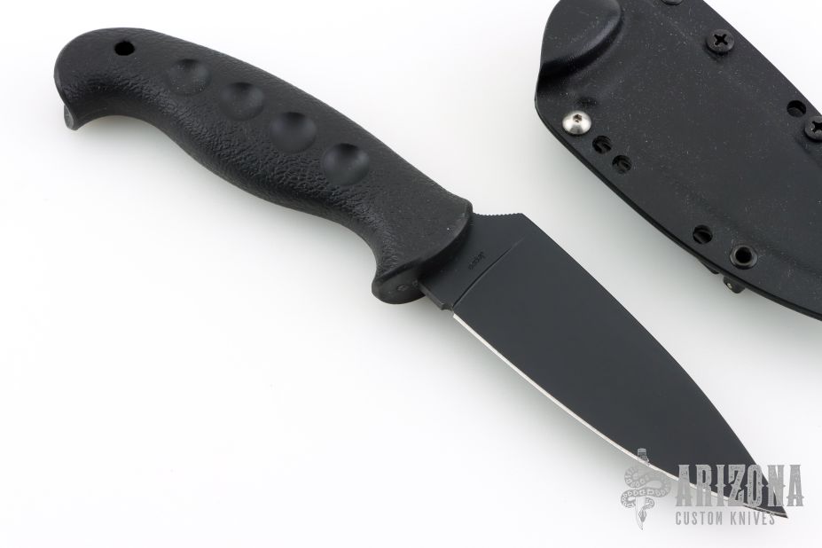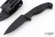 This Temperance fixed blade by Spyderco features a black finished drop point blade with notched thumbrest, .160" blade stock and 1.482" blade depth, hidden tang construction. The handle is black plastic. Comes with box, papers, and kydex sheath. There are a couple light scratches on the blade, excellent condition otherwise.