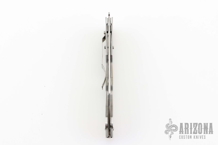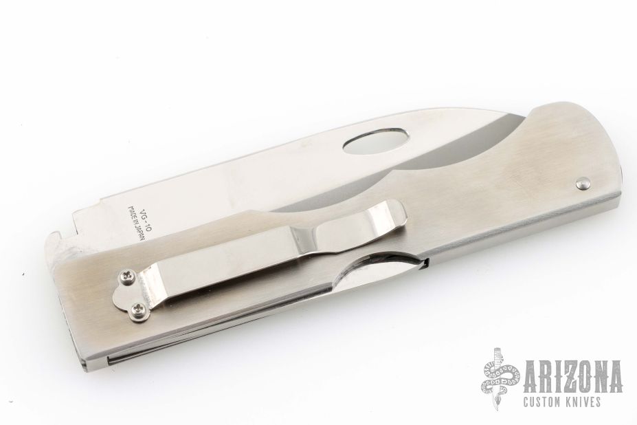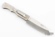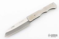 This lockback by AG Russell features a two-tone blade with thumbhole. The handle has an integral stainless steel frame with stainless steel lock spring. Nice double detent. Has a few light scratches, otherwise excellent condition. Comes with original box.