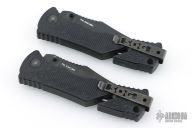 What also makes the Trident so unique is the patent pending Groove™ in the handle, which allows the operator to cut paracord, fishing line, etc. without having to open the blade. The handle also includes a Digi-Grip™ variable pattern for coarser grip in areas that require it. Our bayonet style clip is easily switched for right/left hand carry or removed for pouch storage.