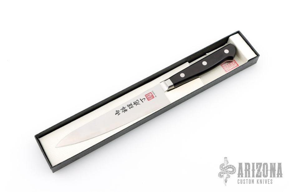 This is a vintage Al Mar C6 has laminated wood scales, integral bolster and full tang construction. Satin finished blade with .072" blade stock and 1.131" blade depth. Comes with original box. Excellent condition.