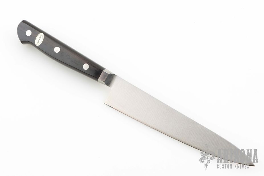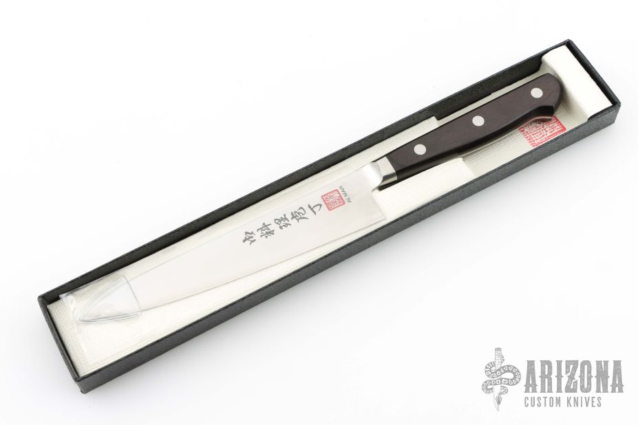 This is a vintage Al Mar C6 has laminated wood scales, integral bolster and full tang construction. Satin finished blade with .072" blade stock and 1.131" blade depth. Comes with original box. Excellent condition.