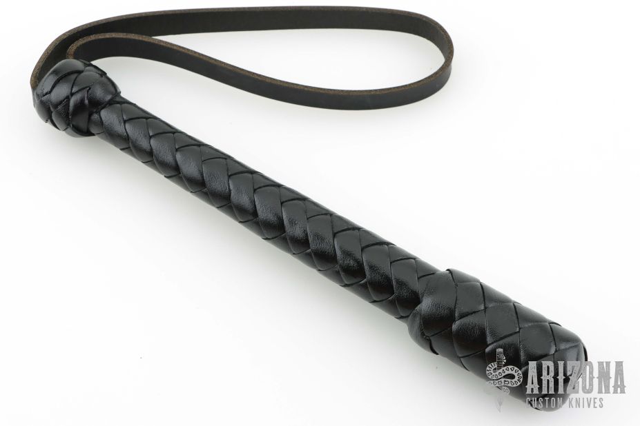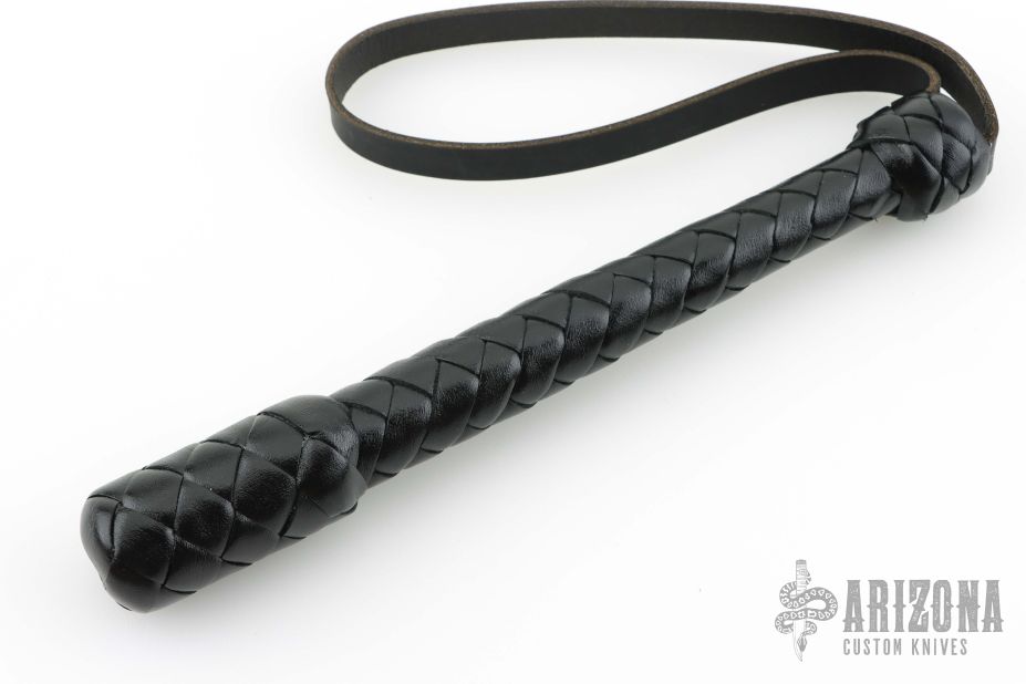 9" Black 894 Blackjack by DD Whips. Spring core black leather covered blackjack with cowhide wrist strap and grip. New from maker. Comes with COA.