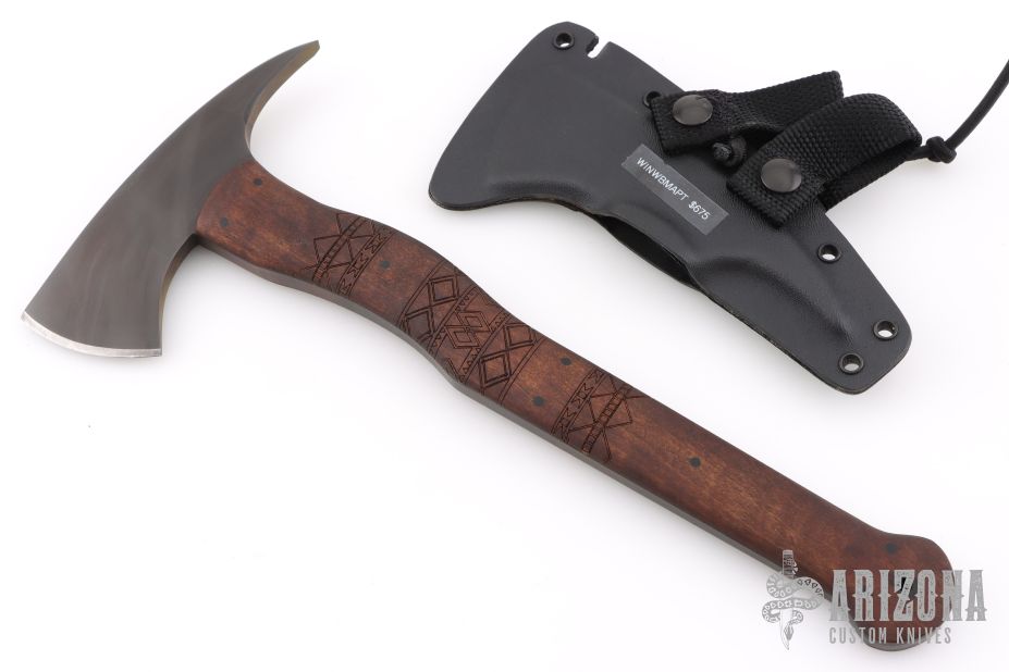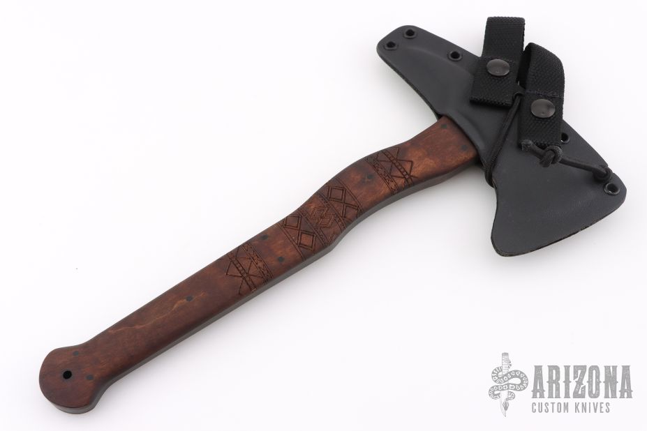 The WK Wild Bill Axe was designed with input from elite contractors who wanted an axe with styling and features suited to their unique field missions. The axe is streamline with two hand hold areas, giving the user options depending on the situation encountered. A partial cord wrapped upper handle option is available. If the handle is damaged under the head, a new cord can readily be installed. The cord is also an excellent emergency resource. Axe Specifications Axe steel: 80CrV2 Black oxide no-glare finish Head length: 6" Overall length: 13" Blade thickness: 3/8" Skeletonzied tapered full tang Partial cord wrap optional Integrated glass breaker Sheath Fast draw carrier Lined thermo-form Kydex HD shockcord quick-release retention system Nylon belt straps with Mil-Spec Pull-The-Dot™ snaps Designed for multiple carry options (See our accessories page for carry options) Comes with original packaging. Excellent condition.