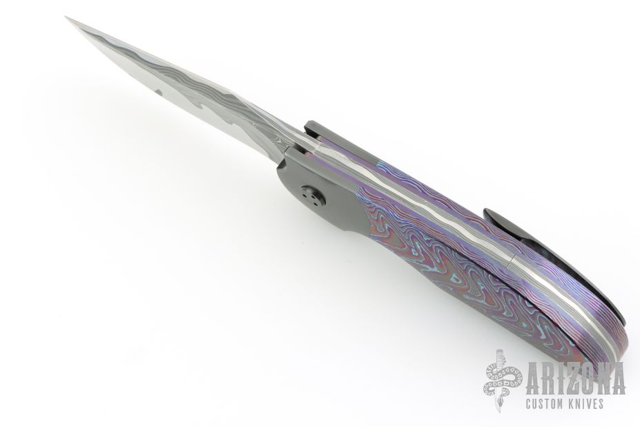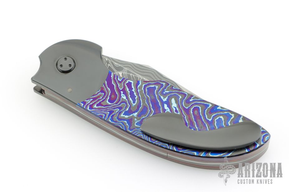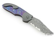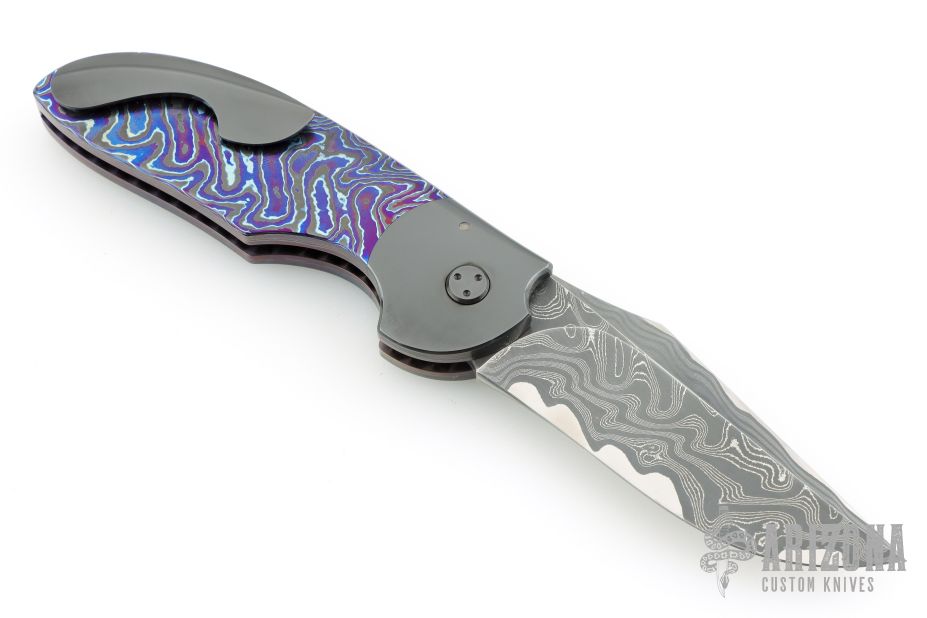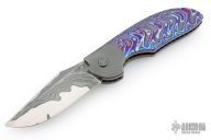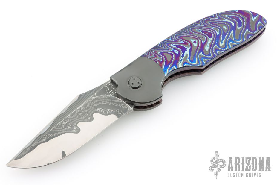 My choice of materials for my knives are natural and exotic handle materials such as pearl, bone, ivory or fine burlwood combined with a Damascus blade. All my knives are made by stock-removal, free hand ground and hand finished. I do not work off of set patterns, but from a simple drawing. This takes a little more time but it also allows me to be more creative and have full control to make slight changes to each custom knife, obviously as result no two knives are ever identical. My first knife was it was once described by another knife maker as organic in design. My basic designs still reflect that organic flow, graceful curves and a minimum of straight lines. I maintain sole authorship on all my knives with the exception of the Damascus I use and heat-treating of stainless steels. Like many makers I began with fixed blades, as I gained skills I moved into folders, then autos. Lately I have taken to building my folders with all the screws hidden."