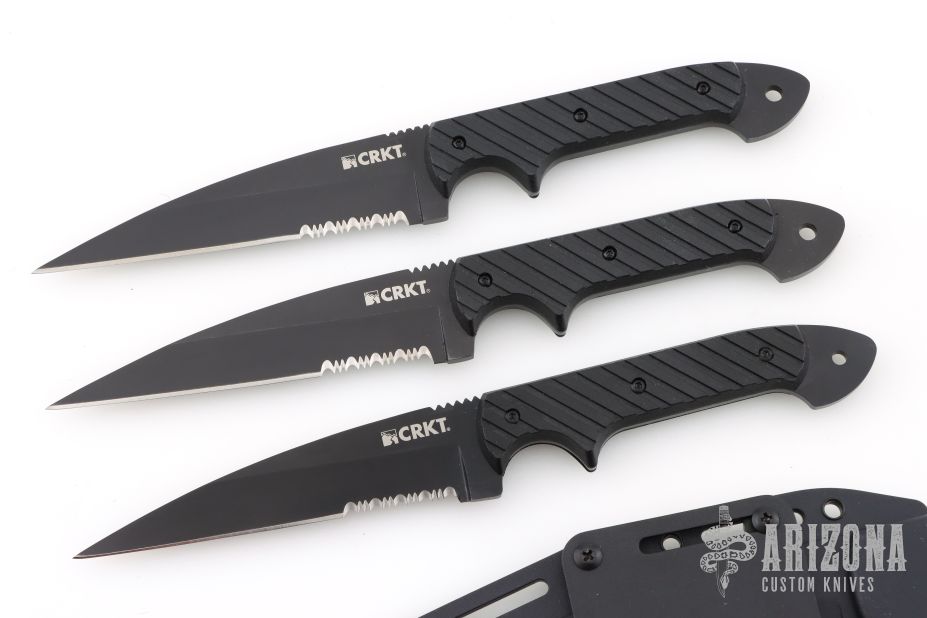 This C/K Dragon by CRKT is a Crawford and Kasper design, it has a black partially serrated blade with notched thumbrest, .134" blade stock and 1.193" blade depth, full tang construction. Comes with orginal box, papers, and black sheath. Has some light scuffs, otherwise excellent condition.