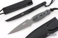 This CRKT K.I.S.S. knife has a black tanto blade with notched thumb rest and textured g10 handle. .143" blade stock, and .698" blade depth. Comes with original box, papers and sheath. Has a couple light scratches, excellent condition otherwise.