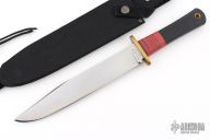 This Trail Master bowie by Cold Steel features a satin finished clip point blade with a false top edge, .306" blade stock and 1.482" blade depth, hidden tang construction. The handle has a brass guard and a rubber handle. Comes with the original box (beat up/broken), papers, and original black nylon sheath. Has a couple light scuffs/scratches, otherwise Excellent condition.