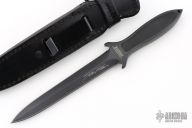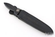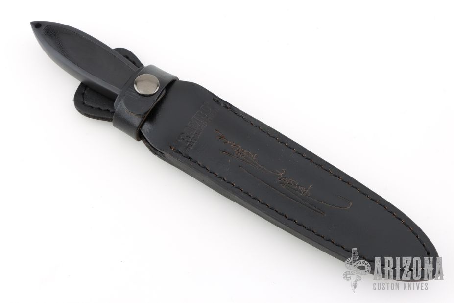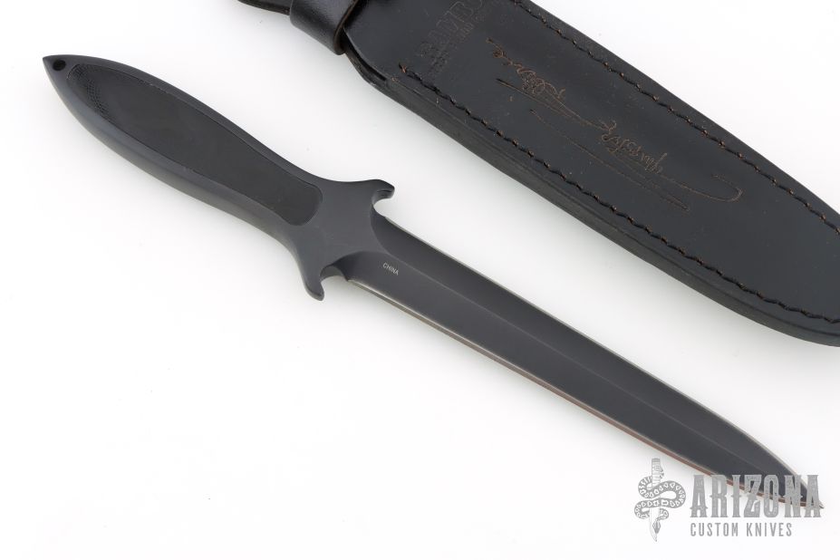 This Rambo First Blood Part II Boot Knife Signature Edition by Master Cutlery and Hollywood Collectibles Group features a black double edged blade with .385" blade stock and .965" blade depth, integral construction with black G-10 inlays. Comes with original box, COA and black leather sheath. Excellent condition.