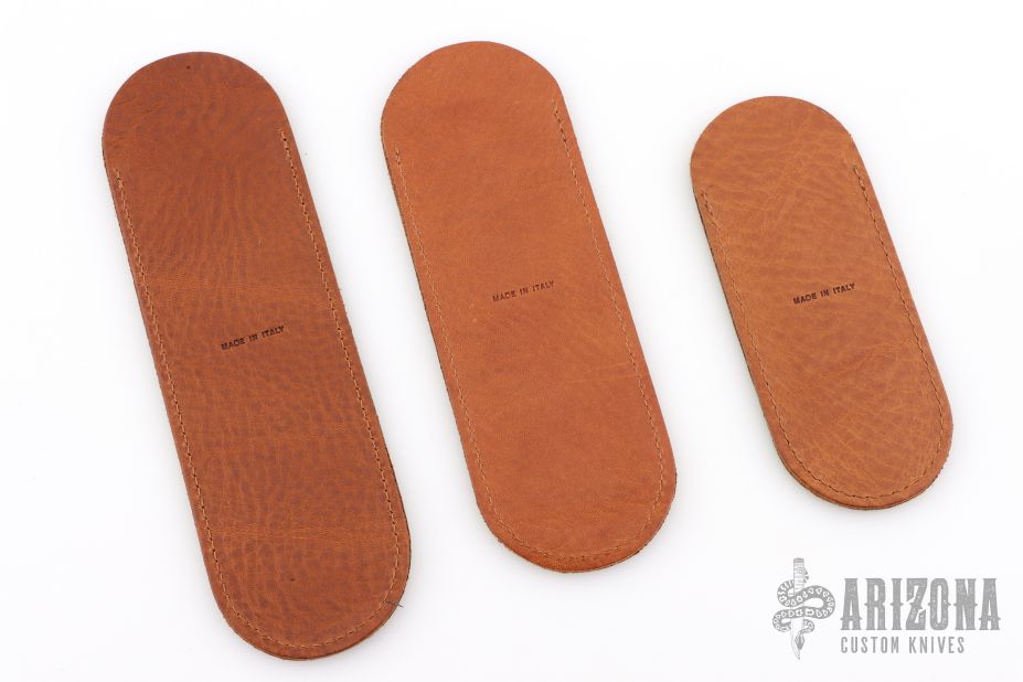 Three AGA Campolin leather slip sheaths, 5.5", 7" & 8". Excellent condition.