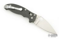 This Spyderco Manix 2 has a satin finished blade, thumbhole and notched thumbrest. The handle is comprised of custom milled and anodized scales, and lanyard tube in pommel. Includes original box and papers. Excellent condition. Comes with original scales and liners.