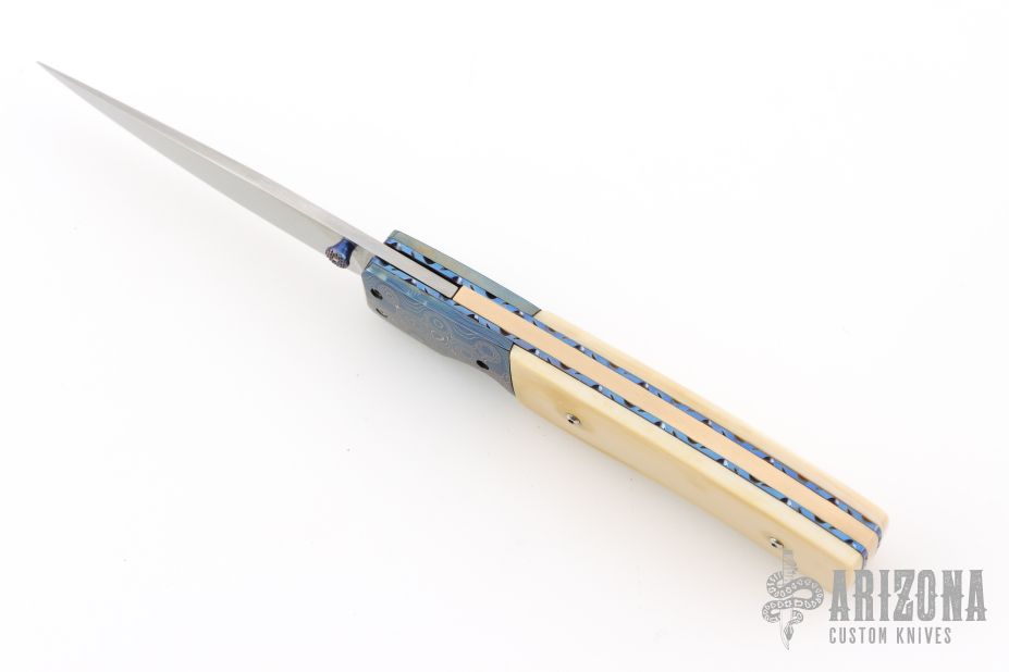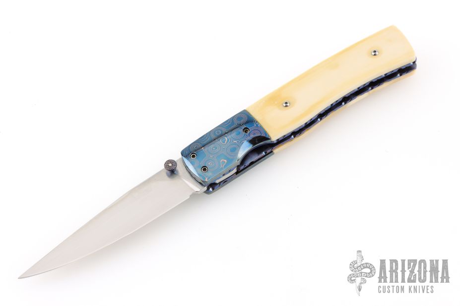 "My first knife was a filet in 1976 made from a sabre saw blade. Progressed to hunting, boot, folders in lockbacks, linerlocks, and finally automatics. Ats-34 is the primary blade steel and some Damascus from various makers. Liners and springs are of titanium and usually anodized. Some file work on blades and most liners. Various handle materials including micartas, circuit-boards, wood, stag, buffalo, ivory, pearl, and oosik." Bill is a charter member of the Florida Knifemakers Association and the local Gator Knife Club. Mentored by Frank Centofante and Mel Pardue in the 1970's.