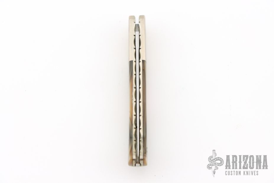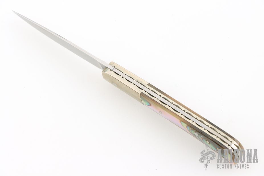 "My first knife was a filet in 1976 made from a sabre saw blade. Progressed to hunting, boot, folders in lockbacks, linerlocks, and finally automatics. Ats-34 is the primary blade steel and some Damascus from various makers. Liners and springs are of titanium and usually anodized. Some file work on blades and most liners. Various handle materials including micartas, circuit-boards, wood, stag, buffalo, ivory, pearl, and oosik." Bill is a charter member of the Florida Knifemakers Association and the local Gator Knife Club. Mentored by Frank Centofante and Mel Pardue in the 1970's.