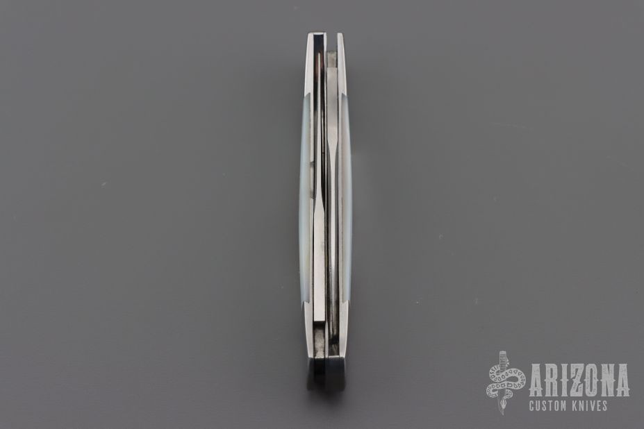 "I was a self-employed machinist from 1955 to 1989. After retirement I read "How to Make Knives", (by Richard Barney and Robert Loveless), and "How to Make Folding Knives", (by Ron Lake, Frank Centofante and Wayne Clay).The hardest thing was learning to grind the bevels. I made a lot of fixed blade knives and gave a lot of them away in the beginning. I sold my first knife in 1990. In 1995 I started making folding knives, rear locks, mid-locks, and liner locks. In 1998 I started making multi-blade slip joint folders, that is when knife making became really interesting. I have won a few "Best Folder" awards, the first being the Oregon Knife Collectors Association in 1995. I have been a voting Knifemakers Guild Member since 2000. I use 416 SS for frames. I use the stock removal method in making my knives. All my blade steels are stainless(ATS 34 & 440C). I use Devin Thomas & Mike Norris Damascus. I do all my own heat treating & hardness testing. All blades are hollow ground. Handle materials are MOP, abalone, natural woods, stag, ivory, etc."