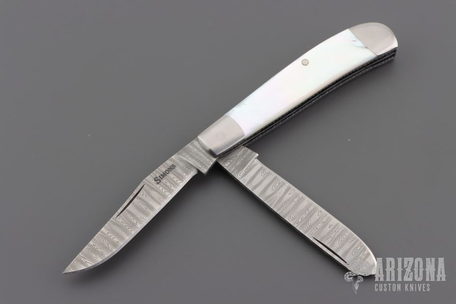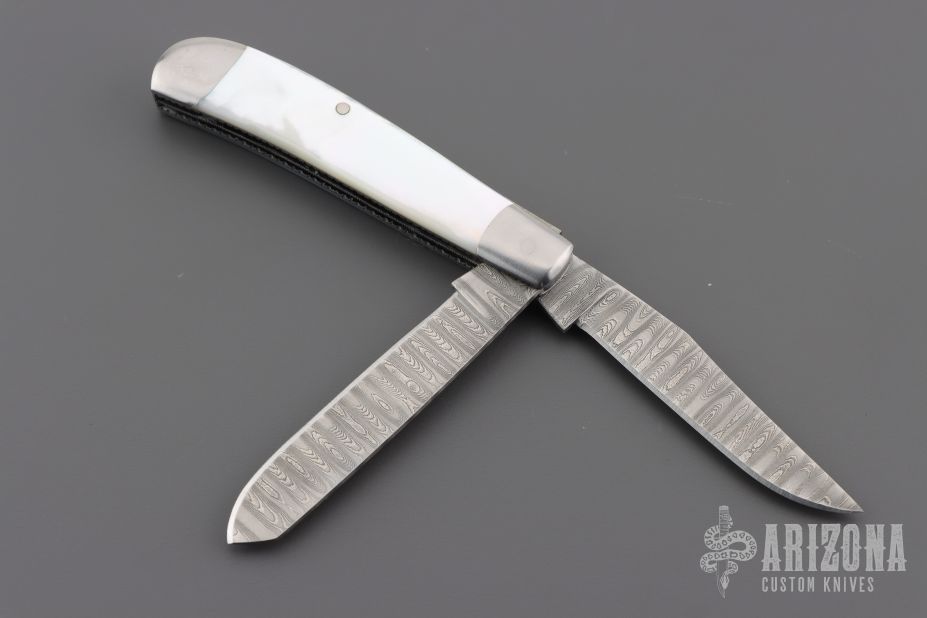 Home Products 2-Blade Trapper - Damascus and Mother of Pearl