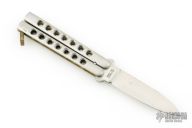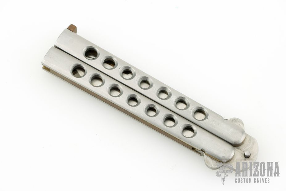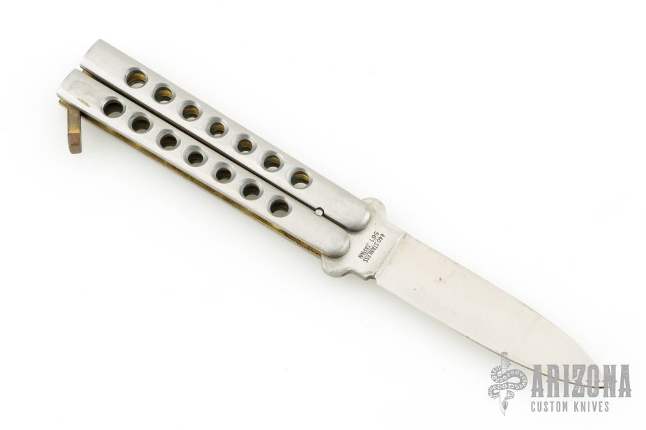 This Bali Hi Balisong by Valor has a satin finished blade. Stainless steel handles with brass T-latch. Has scratches, otherwise good condition.