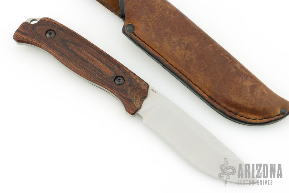 The Hunt line of knives from Benchmade raises the bar! Every element of these knives has been scrutinized and tested to create the best user experience possible. This premium line of hunting knives feature CPM-S30V steel for excellent corrosion resistant, edge retention, and durabilty. A choice of Dymondwood® or contoured G10 is available to fit your preference; both materials are more than capable of taking on the elements while providing a comfortable interface. This 15001-2 Saddle Mountain Skinner fixed blade knife has a Dymondwood® handle and comes with a pressure-fitted leather sheath.