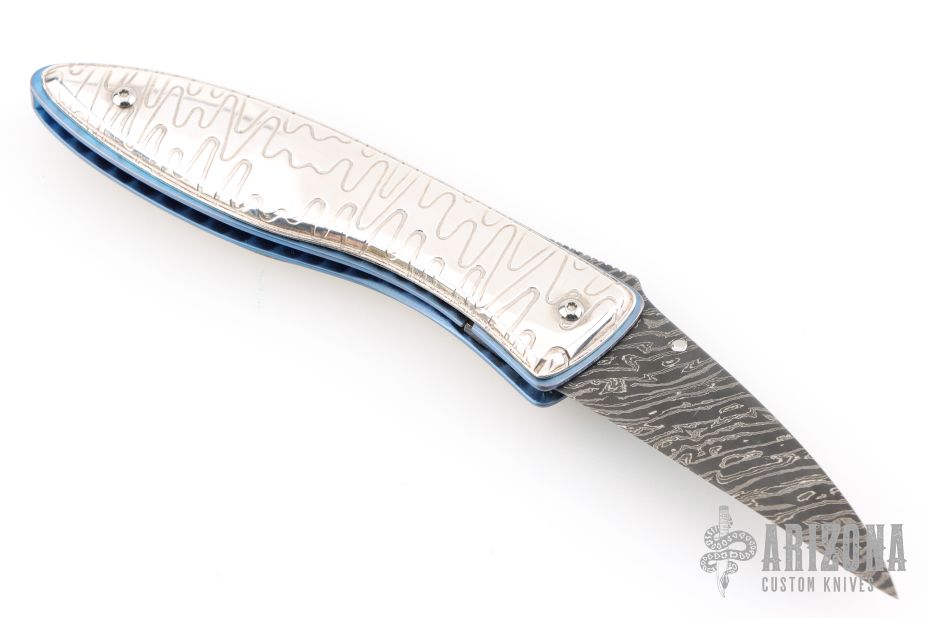 Home Products Damascus and Silver Linerlock Folder