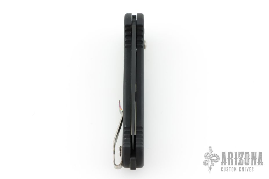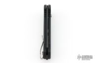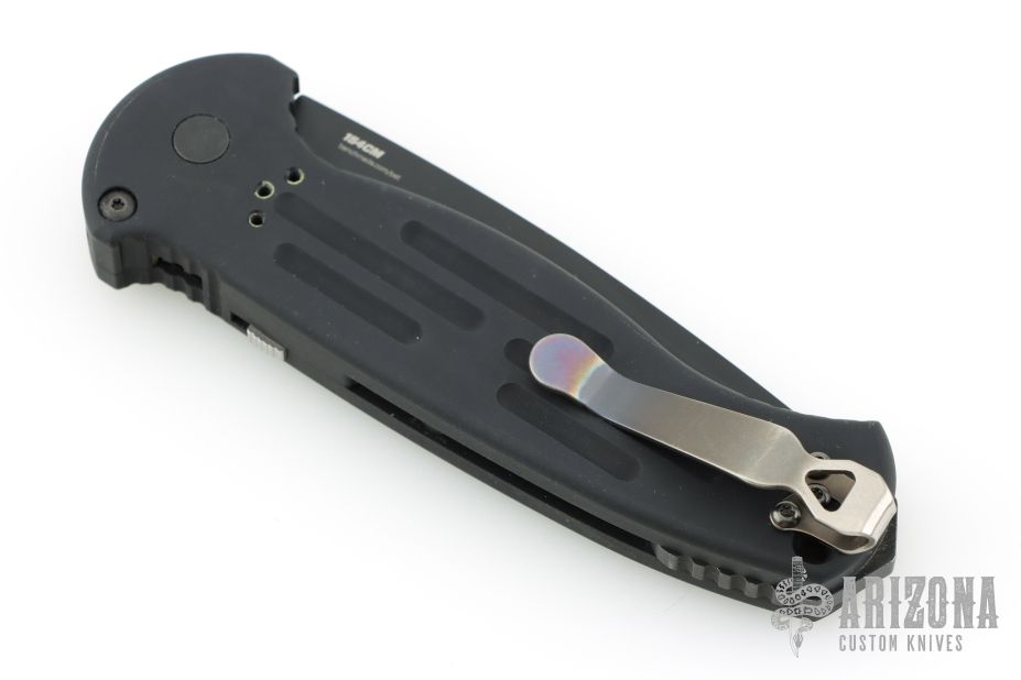 This 9051 AFO II auto from Benchmade has a black spear point partially serrated blade with false top edge. Black anodized aluminum handle. Integrated safety system. Black stainless steel clip - 4 way reversible, and lanyard hole. Comes with original box, sheath and papers. Excellent condition.