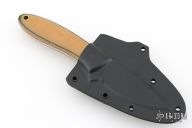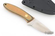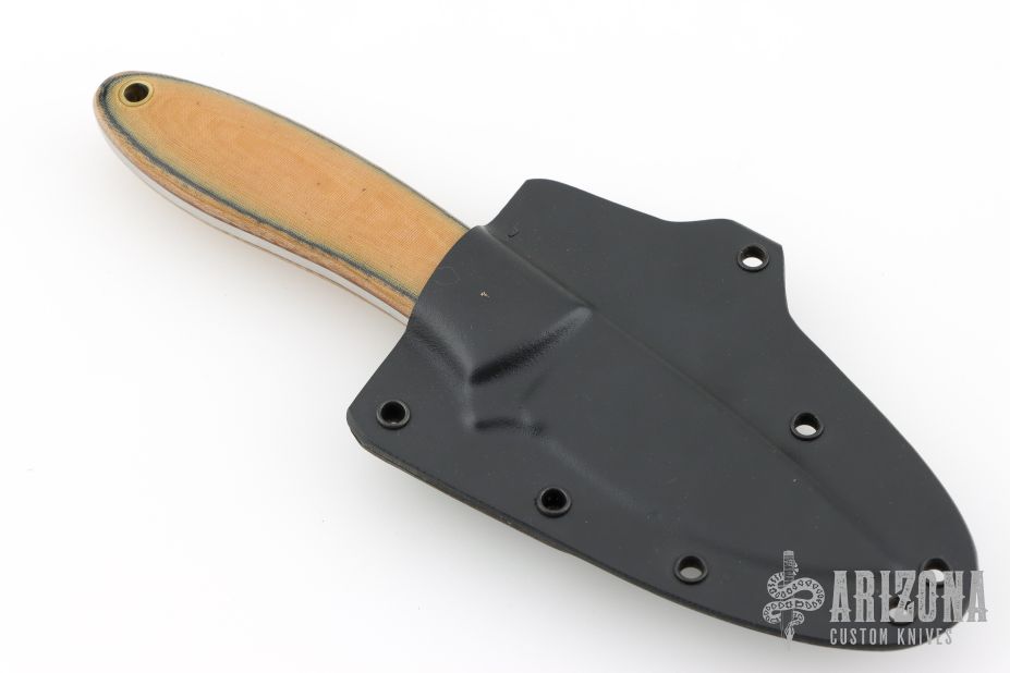 This K-58 Small Evo Hunter by Dozier Knives features a satin finished blade with .119" blade stock and .959" blade depth, full tang construction. The handle has natural linen micarta scales with black line, brass pins and lanyard hole. Comes with kydex sheath with belt clip. New from maker.