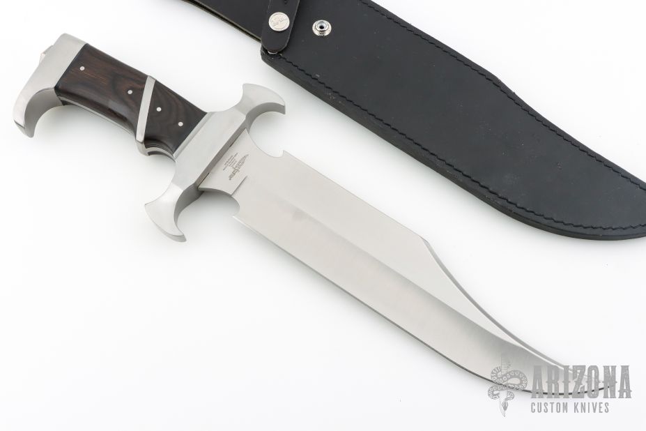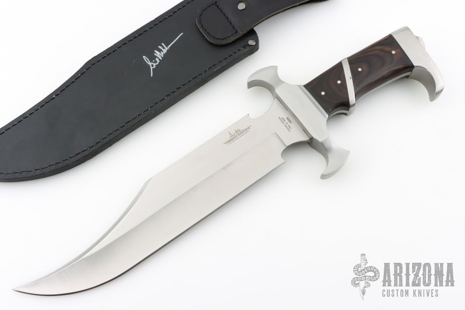 Gil Hibben lives and works in LaGrange, Kentucky. He began making knives part-time after his discharge from the Navy in 1956. He sold his first bowie knife for $45 and that sparked his long and famous career as a professional knife maker. While living in Seattle, WA after his Navy discharge, Gil worked as a machinist for Boeing Aircraft and learned a lot about metals and their properties. In 1964, while living in Salt Lake City, Utah, Gil started making knives full time. This was also the year Gil started making knives from the relatively new 440C steel. Although it is the industry standard now, Gil believes he was the first custom knife maker to use 440C. Hibben has been a full time custom knifemaker since 1957. Over the years Gil achieved fame as a premier custom knife maker and his work has been featured in, and on the covers of, national gun and knife magazines. He has established a whos-who following of collectors including John Wayne, Elvis Presley, Steve McQueen, Sylvester Stallone and Steven Segal or world leaders such as Israel's Defense Minister Moshe Dayan, the Sultan of Brunei and Vice-President Dan Quayle. He has taught and influenced some of the other legendary knife makers such as S.R. Johnson, Harvey Draper and Buster Warenski among countless others. Hibben designed the first line of Browning hunting knives in 1968, the American Kenpo Knife for Ed Parker. Gil's fame dramatically increased in 1988 when Sylvester Stallone, who had purchased several of Gil's custom knives for his own collection, asked Gil to design the now famous knife used in the movie Rambo III. Inducted into the Blade Magazine Cutlery Hall of Fame in 1990.
