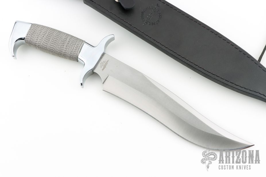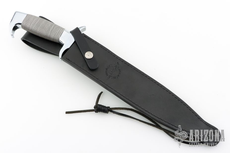 This classic stainless masterpiece was designed with the ancient highlanders in mind. The 8 3/4" 420 stainless steel blade features a mirror-polished stainless guard and pommel with a stainless-wire-wrapped handle for a sleek grip. Includes a leather snap closure belt sheath. 13 1/2" overall. 8 3/4" blade.