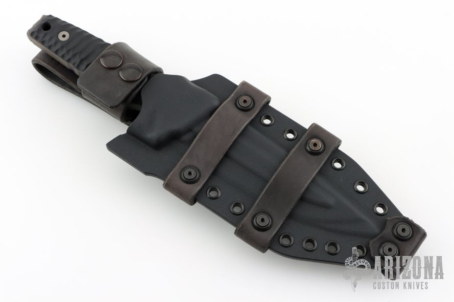 This M-15 by Miller Bros Blades features a drop point blade with swedge, notched thumbrest made from Z-Wear PM steel, .324" blade stock 1.561" blade depth, full tang construction. The handle has textured black G-10 scales with red liners, notched tang, lanyard hole at the butt. Comes with a kydex/leather sheath. Comes with COA dated 2024. Excellent Condition.