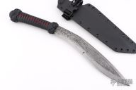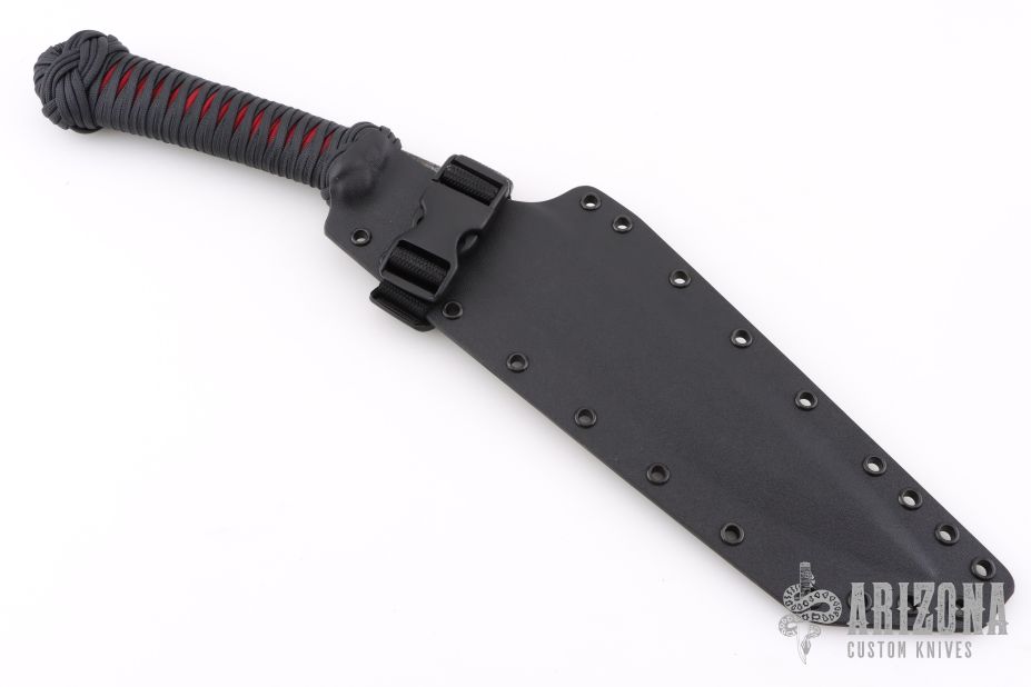 This knife by James Helm features a hand forged blade, .212" blade stock and 1.857" blade depth, hidden tang construction. The handle has a paracord wrap that has been epoxied with a Turk's head knot as a guard. Comes with a kydex sheath set up for TekLok. New from maker!
