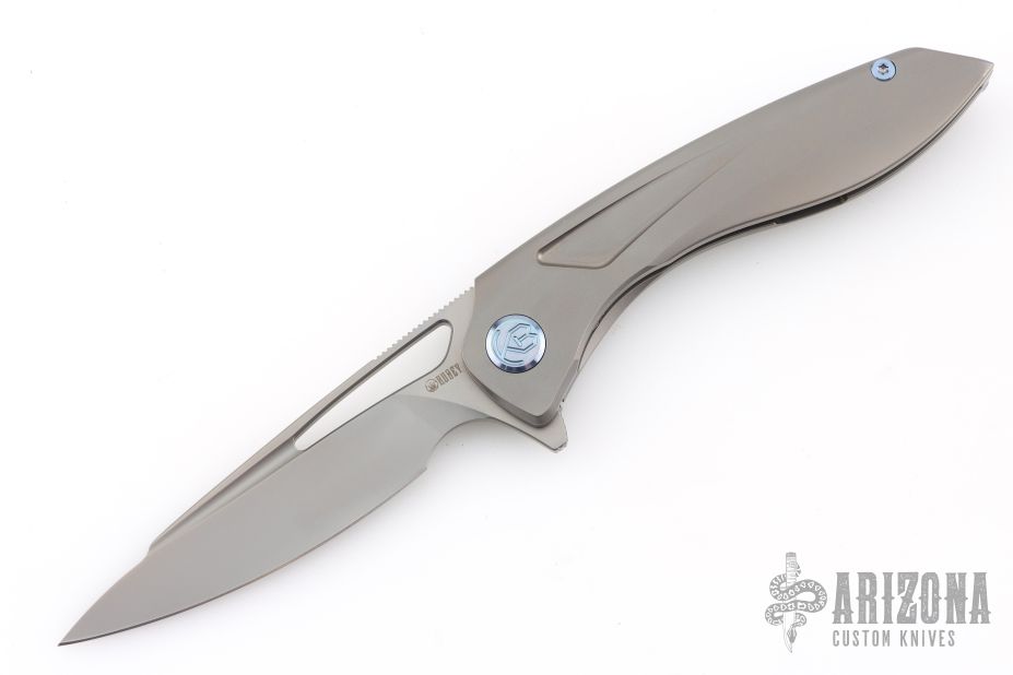 Kubey Velocé Folding Knife Flame Titanium Handle S90V Drop Point Plain Edge Bead Blast Finish KB171J