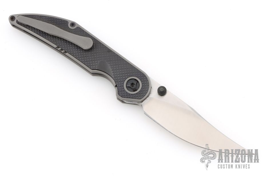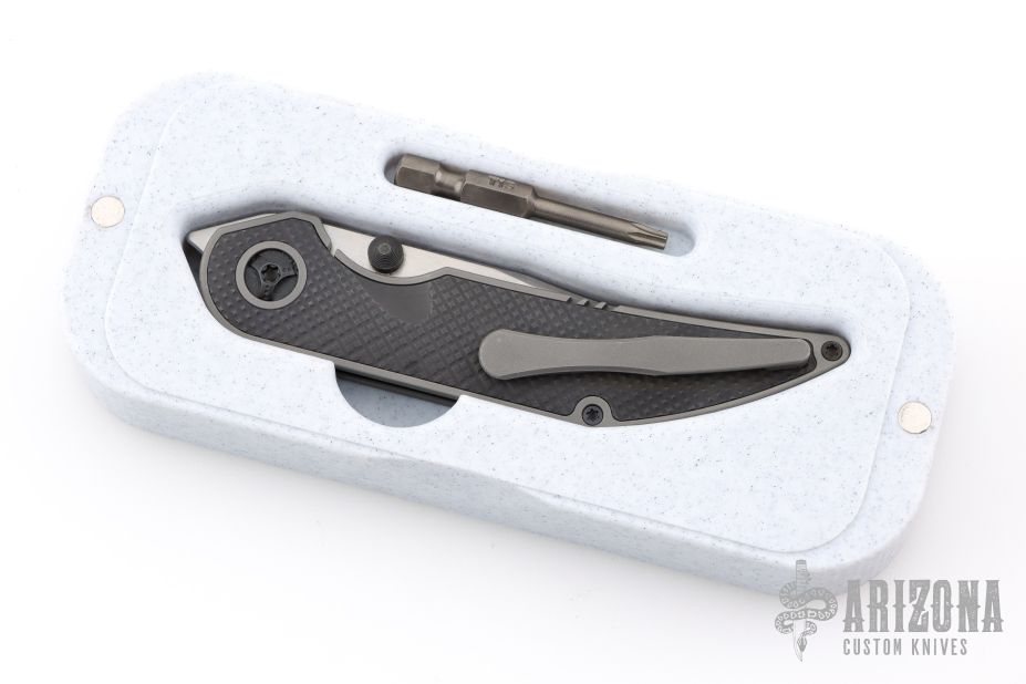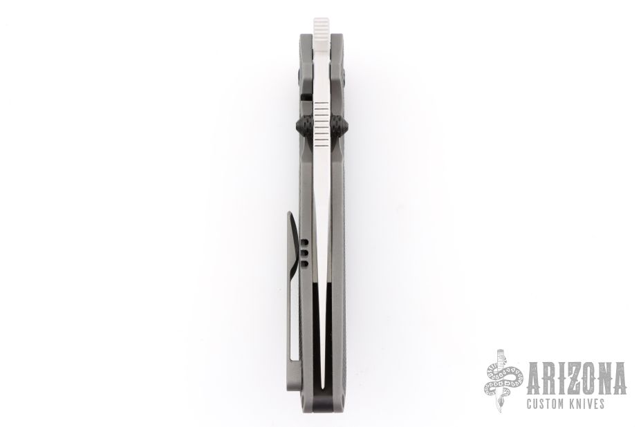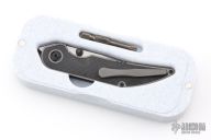 This knife by Hypercut Manufacturing features a satin finished clip point blade with dual thumstuds.  The handle has a bead blasted titanium frame with a matching tip-up pocket clip and blackened titanium inlays.  Nice detent, lock up and blade seating.  Includes the original box and COA.  Has a few light scuffs/scratches otherwise the knife is in excellent condition.