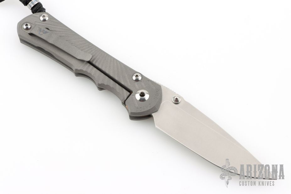 This Large Inkosi from Chris Reeve and Wilson Combat features a tumble finish blade with dual thumbstuds and a bead blasted titanium frame. Bead blast titanium clip, tip up carry. Comes with original box and papers dated June 22, 2022. Excellent condition.