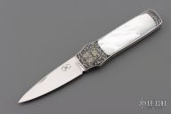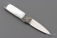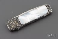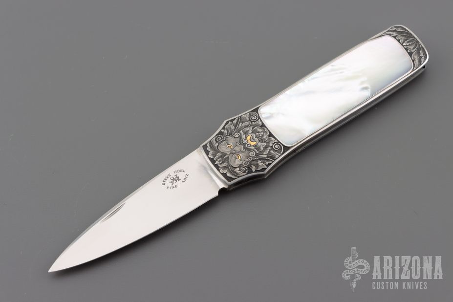 Steve Hoel made his first fixed blade knife in 1953. In 1974 Steve Hoel ventured to California, where he spent three days in the shop of Bob Loveless and Steve R. Johnson, when they were partners. This was his first real exposure to high quality handmade knives, an experience that gave him a big boost. He also developed a big interest in pocket knives at that time. Shortly thereafter he made his first interframe and multiblade folders. In 1978, he joined the Knifemakers Guild, and one year later he retired and began making knives full time. Steve was one of the first to design his knife shapes for engraving. He worked closely with master engravers including Lynton MacKenzie and Steve Lindsay to develop the engravable art knife design.